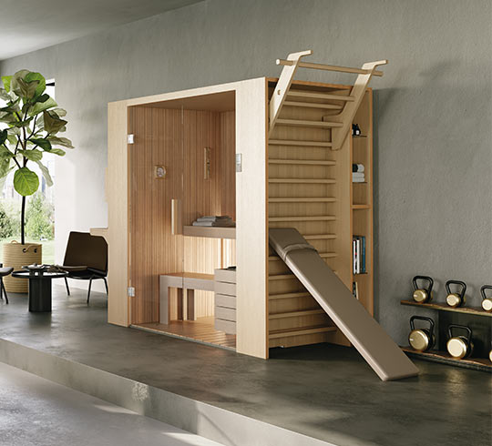 The range of sport and relaxation accessories designed for saunas, created to enhance relaxation and furnish home spaces with style and functionality.
