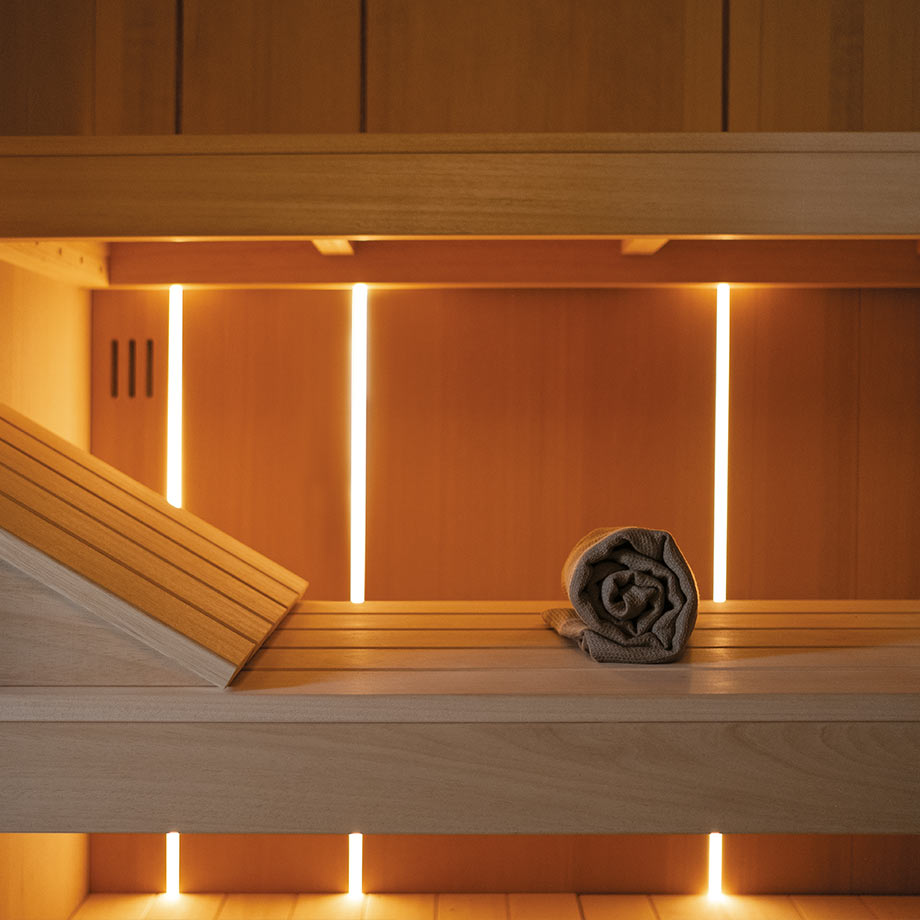 La polyvalence des combinaisons vous permet de choisir d’installer un sauna et de l’associer à une douche. Les différentes combinaisons de modules permettent de créer la séquence thermale idéale pour votre espace.